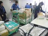 全国の検疫所の食品監視担当課でサンプリングされた試験品は、検査センターに搬送されてきます。受付けられた試験品は、検査項目により、それぞれの検査室に搬送されます。