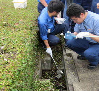 ヒシャクによる蚊の幼虫の採集